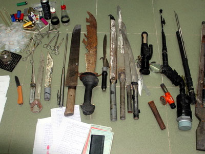 Nhiều mã tấu, súng trong nhà của vợ chồng bán ma túy