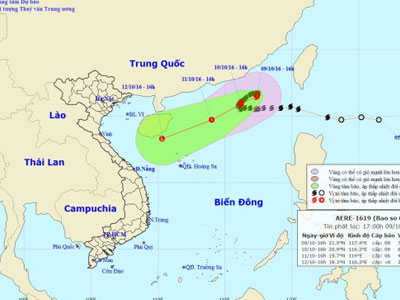 Siêu bão Mangkhut giật trên cấp 17 được dự báo di chuyển theo hướng Tây Tây Bắc, mỗi giờ đi được 20-25km và vào khu vực Đông Bắc Biển Đông.