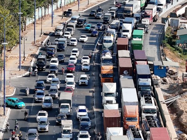 Nhiều tuyến đường ở TP HCM ùn ứ, xe cộ chen chúc