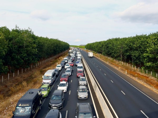 Lượng xe tăng đột biến do người dân đổ dồn về TP.HCM sau kỳ nghỉ lễ, cao tốc Phan Thiết - Dầu Giây ghi nhận tình trạng ùn tắc nhiều đoạn dài hàng km, các phương tiện di chuyển chậm.