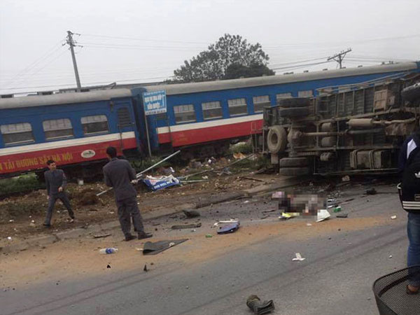 Chiếc xe máy chở 3 người băng qua đường sắt (ở Nam Định), do không quan sát đã bị tàu chở khách Bắc Nam tông văng xa hàng chục mét khiến cả 3 tử vong.