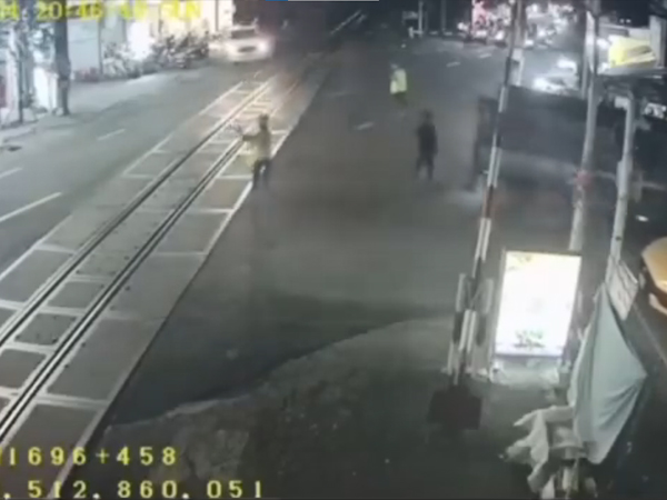 Xe máy lao qua barie khiến tài xế văng xuống đường ray đúng lúc tàu hỏa đi tới
