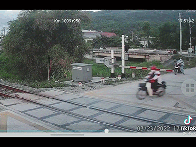 Hệ thống phòng vệ đường ngang đang hoạt động cảnh báo tàu đang đến, tuy nhiên nhiều người vẫn bất chấp để vượt qua. Hậu quả một thanh niên kém may mắn đã bị tàu tông văng xa khiến nạn nhân tử vong tại chỗ