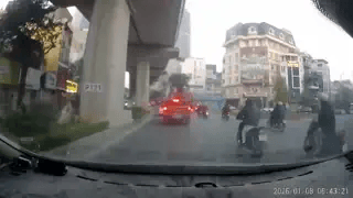 Camera ghi lại cảnh xe máy lạng lách, phanh gấp, trượt ngã vào gầm ô tô, bất tỉnh trên đường ở Hà Nội