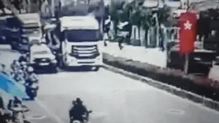 Người đi xe máy ngã lộn nhào vì dây kéo xe tải căng ngang đường