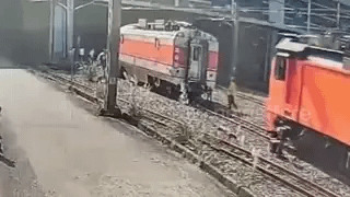 Clip: Công nhân đường sắt thoát chết thần kỳ sau cú kẹp giữa hai toa tàu