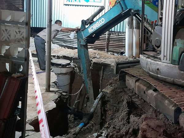 Sập công trình thi công đường ống thoát nước, hai công nhân bị đất vùi lấp