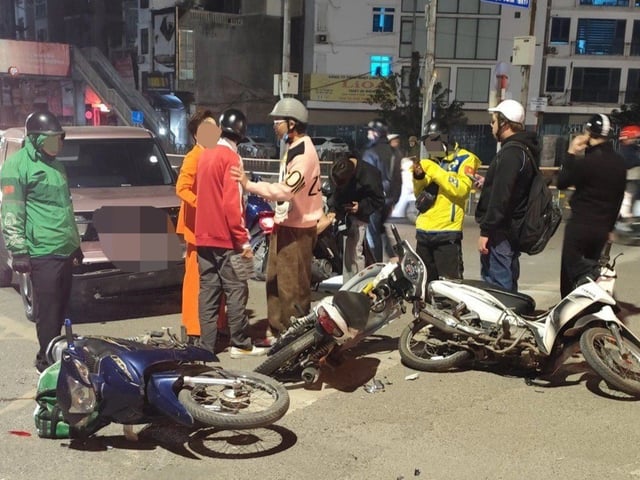 Khoảng 23h đêm qua (14/11), tại khu vực nút giao Giảng Võ - Láng Hạ (Hà Nội) đã xảy ra một vụ va chạm giao thông liên hoàn, khi một ô tô con bất ngờ đâm mạnh vào hàng loạt xe máy đang dừng chờ đèn đỏ.