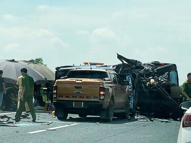 Ô tô limousine biến dạng sau tai nạn liên hoàn, người bị thương nằm la liệt trên cao tốc