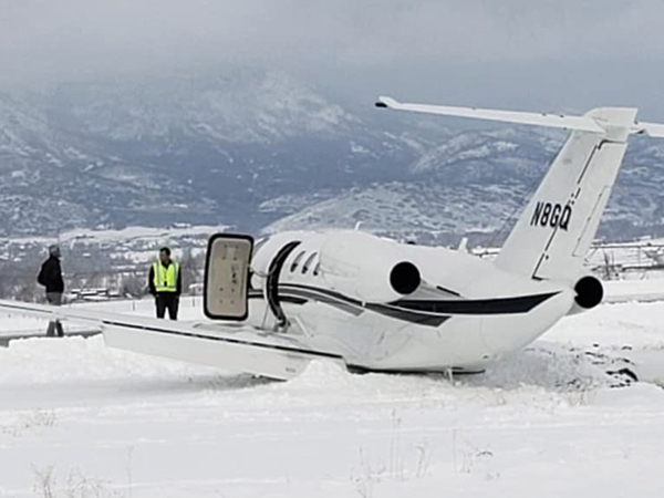 Máy bay cỡ nhỏ trượt khỏi đường băng tại sân bay bang Utah do va phải một dải băng, nhưng không gây thương vong.
