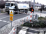 Qua clip tai nạn tàu hỏa tông xe đầu kéo trên Quốc lộ 1A ở Hà Nội cho thấy, nhân viên gác chắn hạ barie chậm và không ra hiệu cảnh giới dừng tàu.