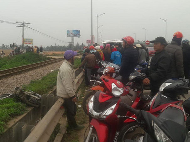 Chiếc xe máy chở 3 người băng qua đường sắt (ở Nam Định), do không quan sát đã bị tàu chở khách Bắc Nam tông văng xa hàng chục mét khiến cả 3 tử vong.