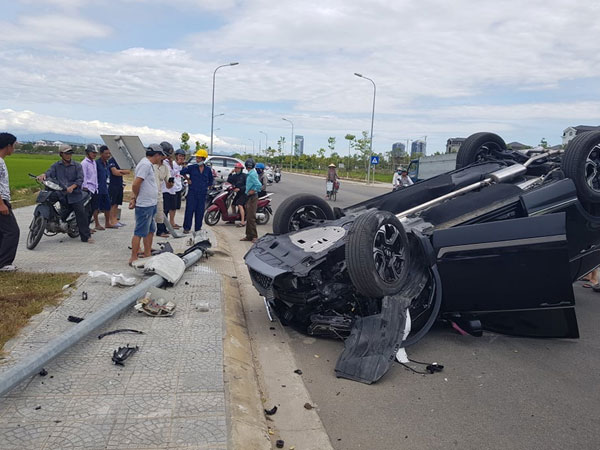 Trang 1Va chạm vào cột điện xế hộp CR-V vỡ nát, một người phụ nữ nhập viện nguy kịch