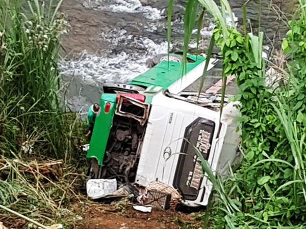 Chiếc xe khách đang chở 42 người vừa gần đổ hết đèo Lò Xo thì bất ngờ mất lái, lao xuống vực sâu hơn 20 mét làm 21 người thương vong.