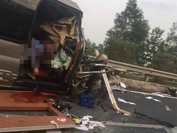Đầu xe khách nát bét sau va chạm trên cao tốc, ít nhất 1 người tử vong và 2 người bị thương nặng