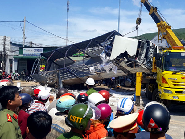 Sáng 14/5, sau khi tông xe tải trên quốc lộ 20, xe chở phân bón tiếp tục lao đi và húc nhiều ôtô, xe máy rồi lao vào nhà dân.
