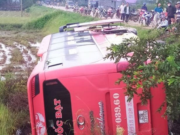 Trang 1Xe khách 'bay' xuống ruộng, nhiều hành khách hoảng loạn
