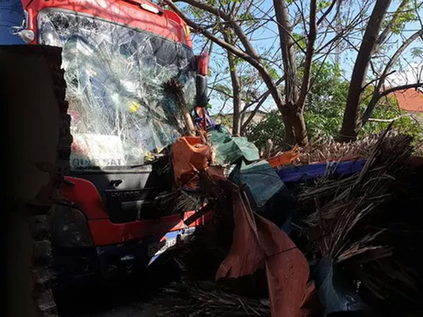 Xe khách tránh trâu trên đường đâm vào nhà dân, nhiều người may mắn thoát chết