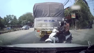 Suýt mất mạng vì sang đường ẩu khi bị xe tải che khuất tầm nhìn
