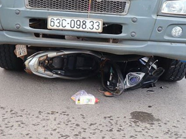 Xe tải cuốn xe máy vào gầm, 2 mẹ con tử vong