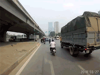 Trang 1Video: Người đàn ông chạy xe máy 'drift' thẳng vào gầm xe tải rồi thoát chết trong gang tấc