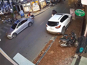 Rất may sau khi nam thanh niên đi xe máy ngã xuống đường, xe ô tô đi phía sau phanh kịp nên không xảy ra tai nạn nghiêm trọng.