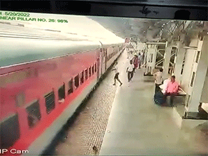 Người đàn ông cố gắng leo lên con tàu khi nó đã di chuyển nhưng bất ngờ bị trượt chân và ngã xuống gầm đường ray sau đó bị kéo lê một đoạn khiến tất cả những người có mặt đều vô cùng hoảng hốt.