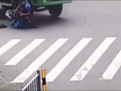 Đoạn video ghi lại cảnh một người đàn ông điều khiển xe máy đang di chuyển trên đường thì tấp vào lề đường. Sau khi quan sát xung quanh, người này mới phi xe sang đường nhưng lại bất ngờ dừng xe giữa đường. Vài giây sau, một chiếc xe tải đi tới, tông trúng khiến người đàn ông đi xe máy văng xuống đường.