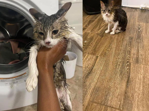 Sơ ý để mèo chui vào máy giặt ngủ tít mít, 'sen' hoảng hồn dập vội cầu dao mới cứu được 'boss'