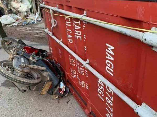 Thùng container rơi xuống đường đè chết một phụ nữ ở Bình Dương