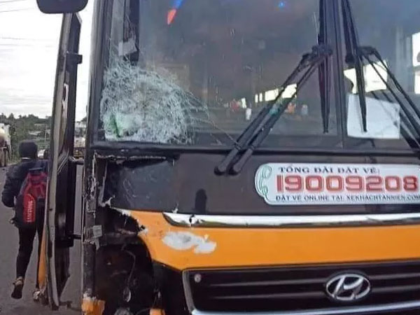 Cú tông trực diện khiến người đi xe máy té xuống đường, bị xe khách cuốn vào gầm, tử vong tại chỗ.