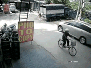 Video: Cú văng lốp không thể cản phá khiến người đi xe đạp bất động