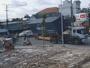 Video: Thùng container đổ ập xuống đường, người phụ nữ hoảng sợ bỏ xe máy chạy