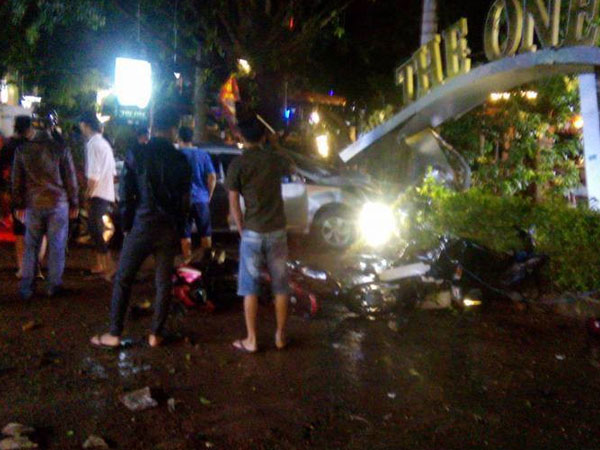 Chiếc ô tô bất ngờ mất lái, lao vào cổng của một quán cà phê rồi tông 2 nữ sinh thiệt mạng, nhiều khách đến xem trận chung kết World Cup 2018 bị thương.
