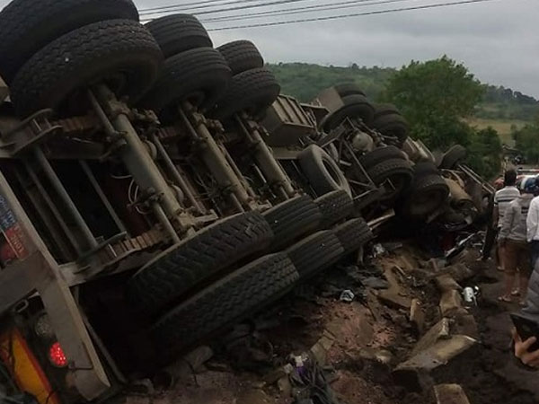 Lưu thông với tốc độ cao, khi tới ngã tư, chiếc xe tải chở đất tông đã thẳng vào xe 4 chỗ khiến cả 2 xe bay cùng xuống ruộng, làm 1 người chết, 1 người bị thương trong xe 4 chỗ bị tông nát đầu.