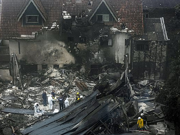 Hiện trường vụ rơi máy bay khiến toàn bộ người trên máy bay thiệt mạng và nhiều người dưới mặt đất bị thương tại Brazil