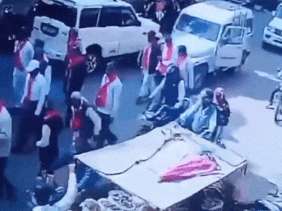 Chiếc xe đang di chuyển chậm trên đường bất ngờ tăng tốc rồi lao thẳng vào đám đông khiến 5 người bị thương.