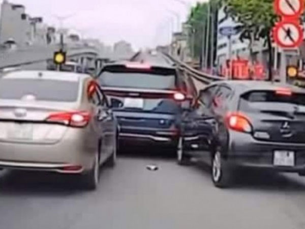 Bất ngờ dừng xe, 'xế hộp' lập tức nhận tai họa từ 2 ô tô