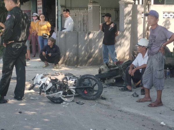 Hai thanh niên điều khiển lao qua phần đường ngược lại, rồi tông mạnh vào ô tô tải. Sau cú tông mạnh, xe máy bị cuốn vào gầm, 2 người trên xe tử vong tại chỗ.