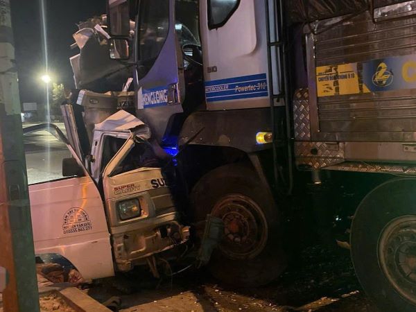 Sau va chạm với xe tải lớn trên quốc lộ 1 (đoạn qua thị xã Kỳ Anh, Hà Tĩnh), xe tải nhỏ bị vỡ nát, tài xế tử vong trong cabin.