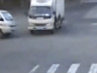 Sau cú va chạm, người phụ nữ ngồi trên chiếc xe tải bất ngờ văng ra ngoài rồi rơi xuống đường. Vụ va chạm xảy ra tại một ngã tư ở tỉnh Chiết Giang, Trung Quốc.