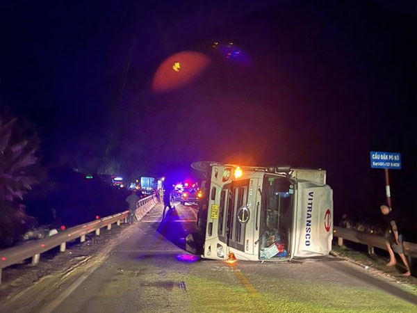 Tài xế điều khiển xe tải đi không đúng làn đường, phần đường quy định dẫn tới xe bị lật nghiêng rồi gây tai nạn với ôtô chở theo 4 người.