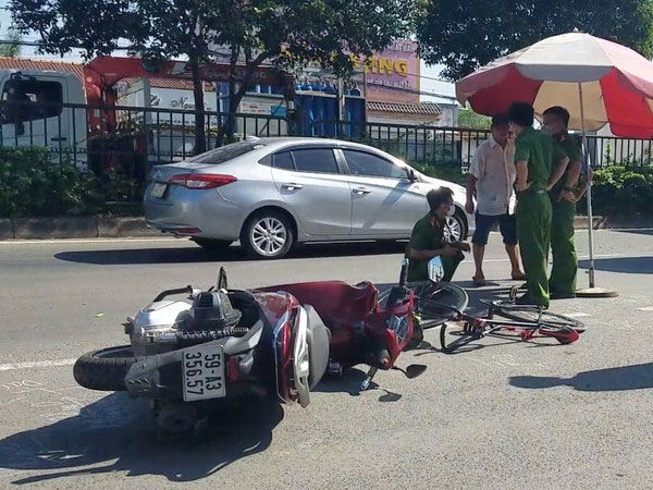 Ô tô 4 chỗ va chạm liên hoàn với nhiều xe máy khiến 2 cha con tử vong, nhiều người khác bị thương ở TP Phú Quốc, tỉnh Kiên Giang.