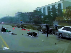 Chiều 20/1 (tức 29 Tết) tại QL1A ,Thanh Trì, Hà Nội đã xảy ra vụ tai nạn liên hoàn giữa ô tô con và 7 xe máy.