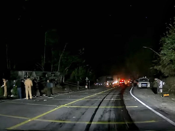 Xe tải đang chạy trên đường Hồ Chí Minh (đoạn qua tỉnh Quảng Nam) bất ngờ mất lái lao vào ta luy bên đường, 3 người trên xe tử vong tại chỗ, bị mắc kẹt trong cabin.
