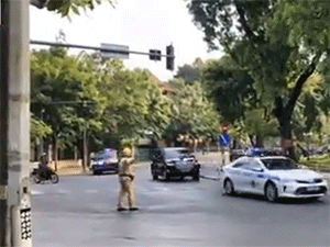 Thót tim khoảnh khắc thanh niên lao xe máy đâm ngang đoàn ưu tiên