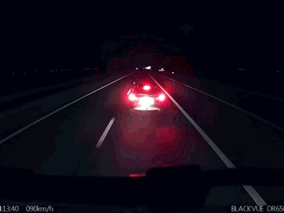 Cố tình trêu ngươi chiếc xe container chạy phía sau đang chạy với tốc độ 91km/h, chiếc sedan màu đen đã bị húc văng ra khỏi đường.