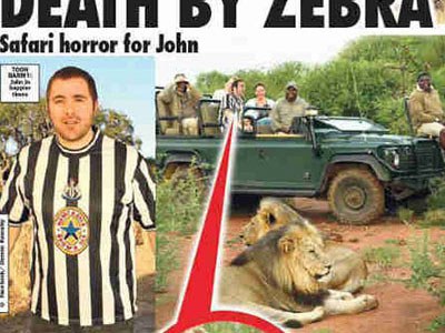 Tờ Sun Sport mới đây đăng tải câu chuyện về tấn thảm kịch của 1 CĐV Newcastle khi anh này bị một con ngựa vằn "tấn công tình dục" đến chết khi đang tham quan tại khu bảo tồn động vật.