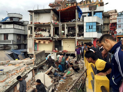 Truyền hình địa phương Nepal hôm nay chiếu cảnh khu vực Kathmandu và vùng lân cận bị tàn phá, sau động đất 7,8 độ Richter hồi cuối tuần.
