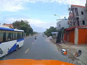 Sự cố khiến nam tài xế giật mình bấm còi inh ỏi.